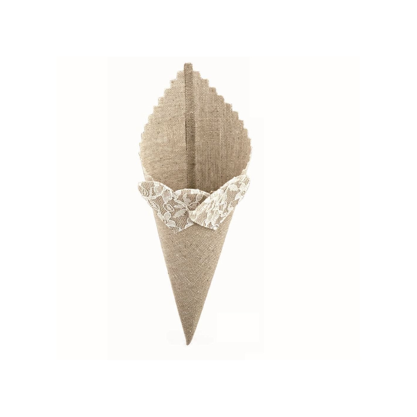 Bomboniera decorazione Cono tessuto beige e inserto cuori D 7 x h 20 cm confezione 12 pz art 71763