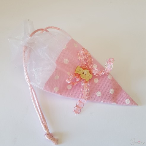 Bomboniera Sacchetto cono orsetto porta confetti Rosa nascita battesimo 7 x h 10 cm set 32 pz Art C0923