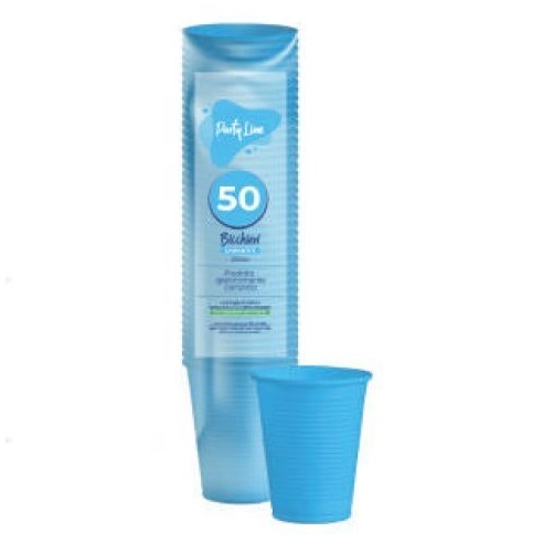 Bicchiere monouso in Plastica Celeste da 200 CC bibita FESTA PARTY confezione 50 pz Art 0112