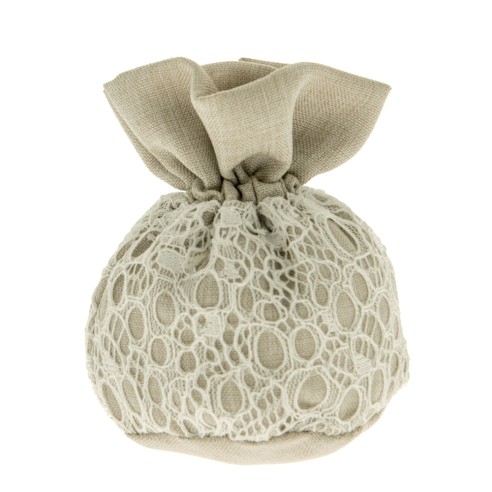 Sacchetto per Confetti in Tessuto Tortora e ricamo Bianco ideale per Wedding Party Planner o decorazione Matrimonio Anniversario Compleanno o festa a Tema .