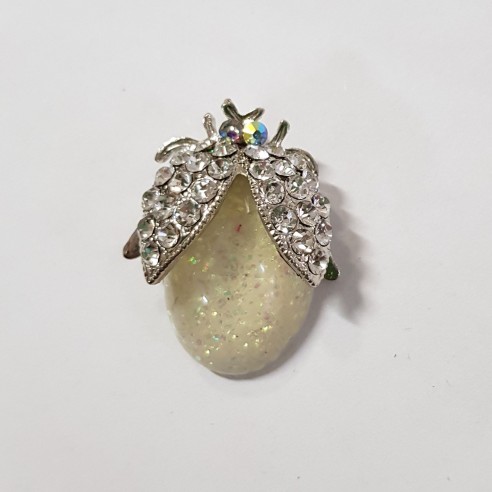 Spilla in metallo a forma di Coleottero scarafaggio con brillantini bianchi e corpo avorio idea regalo o decorazione bomboniere matrimonio anniversario e altre occasioni .