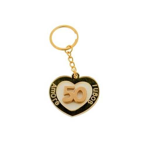 Bomboniera Porta Chiave in pvc Cuore numero 50° Anniversario 4,5 cm Confezione 12 pz art CA153