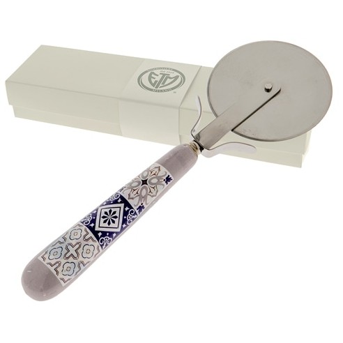 Bomboniera Taglia pizza manico in Porcellana con disegno Mosaico 19 cm con scatola art 12A085