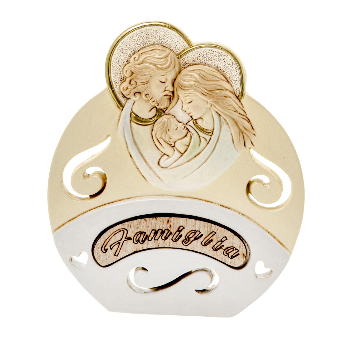 Bomboniera icona Sacra Famiglia in resina e legno H 12 cm art 04A370
