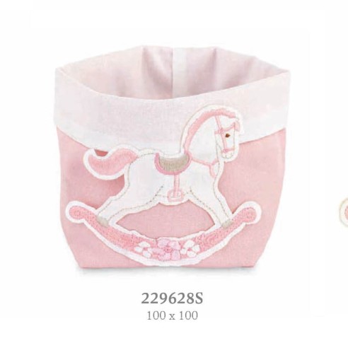 Bomboniera Cestino confetti in tessuto rosa con Cavallo a dondolo 10 x h 10 cm confezione 1 pz art 229628S