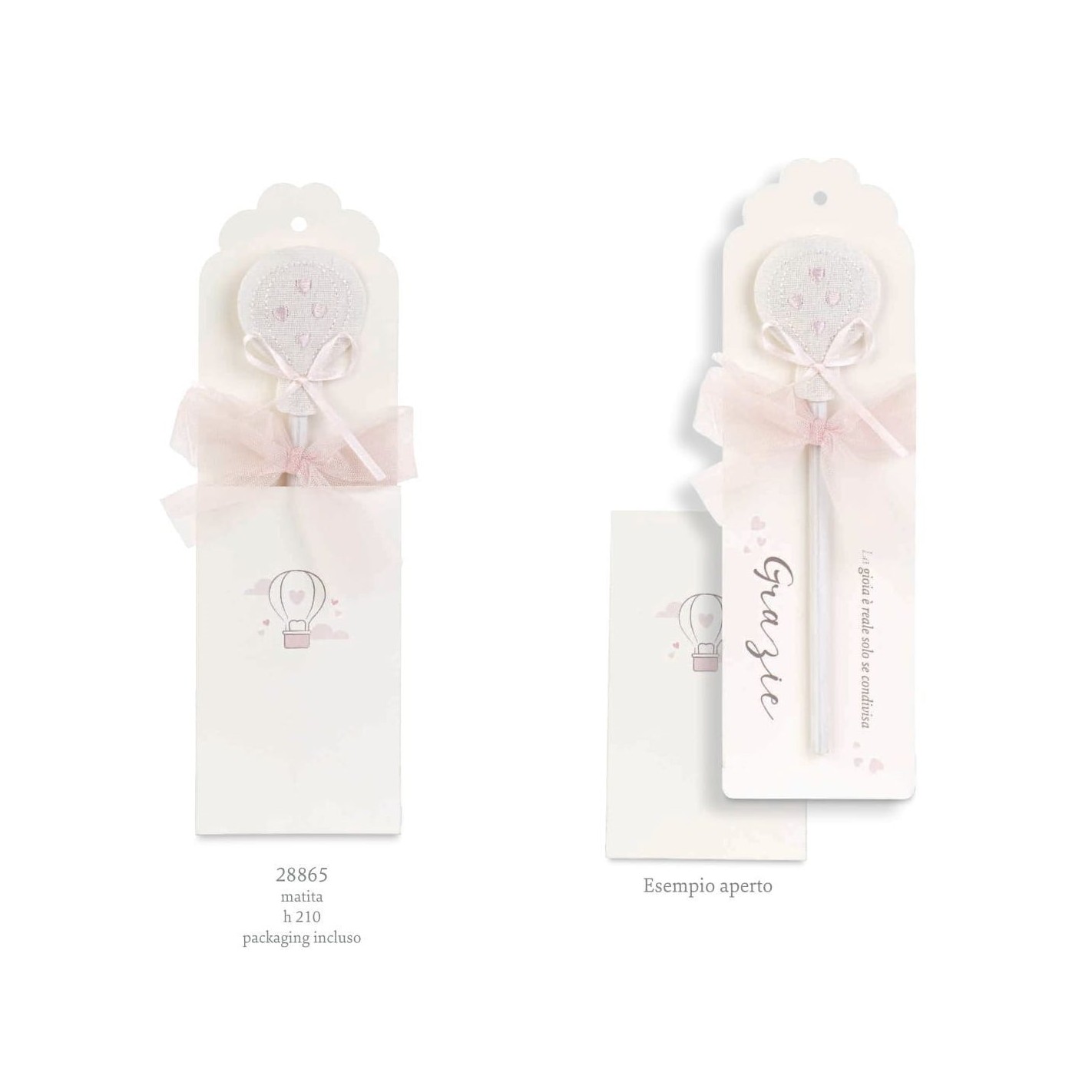 Bomboniera matita con inserto Mongolfiera Bianca e Rosa Wedding h 21 cm art 28865