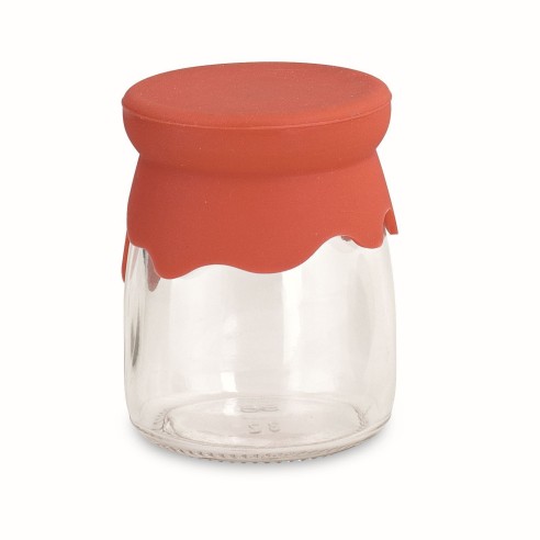 Bomboniera Barattolo vetro con tappo silicone rosso tondo set 12 pz art 28383