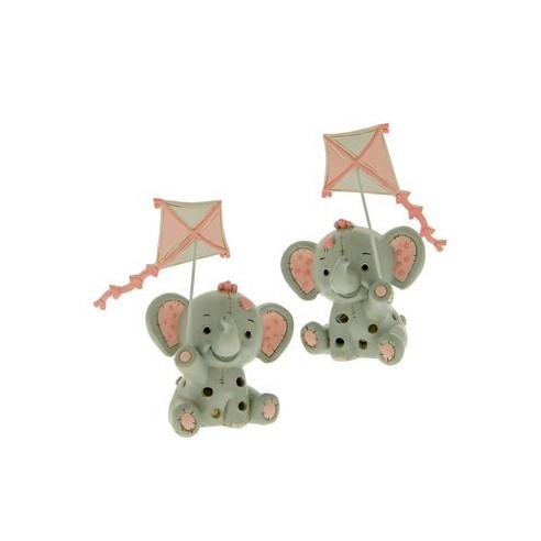 Bomboniera decorazione Elefante in resina ROSA con Aquilone e LED luminoso Battesimo Nascita h 14 cm Set 2 pz art 04A188