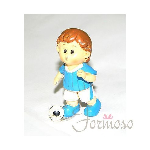 Bomboniera decorazione calciatore bimbo celeste h 6 cm art 04293