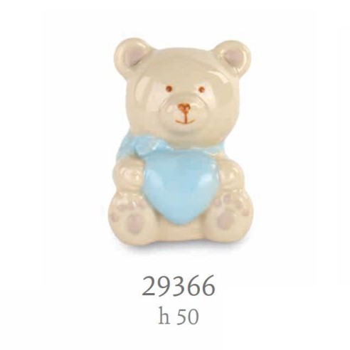 Bomboniera Orsetto in porcellana con inserto cuore Celeste Battesimo Nascita h 5 cm art 29366