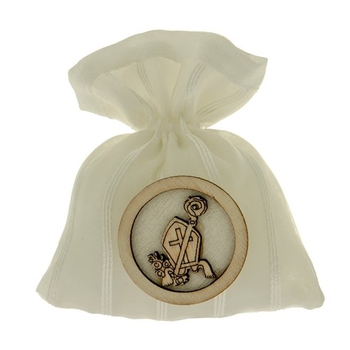 Bomboniera Sacchetto in tessuto BIANCO con inserto Simbolo Cresima Legno 10 x h 12 cm Confezione 12 pz art C2493
