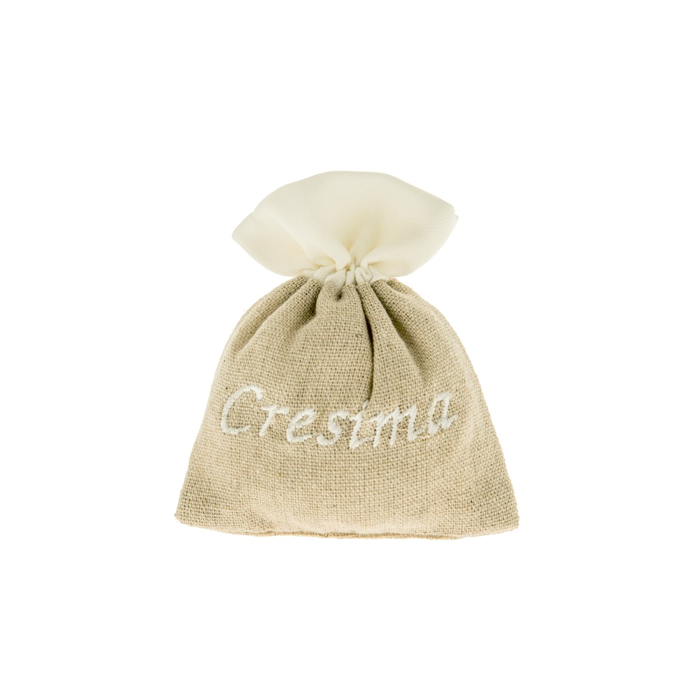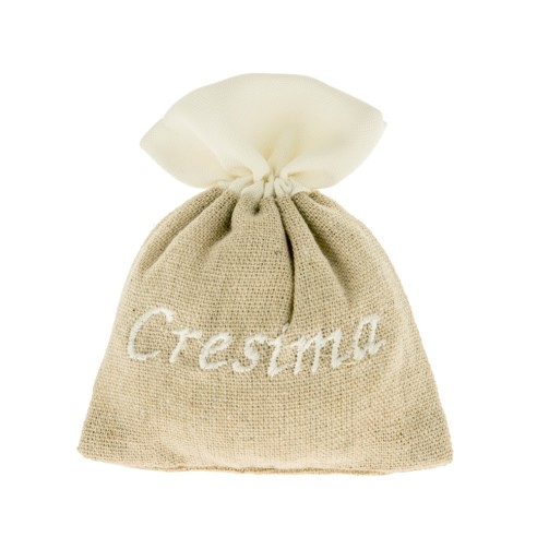 Bomboniera Sacchetto porta confetti in tessuto Beige inserto Scritta Cresima 10 x h 12 cm Confezione 12 pz art C2309