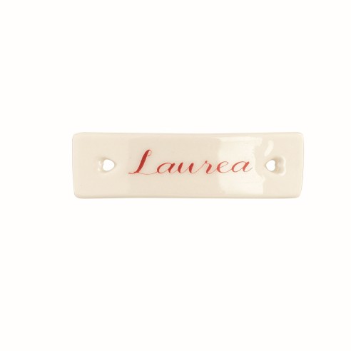 Targhetta in ceramica Bianca con scritta LAUREA in rosso idea decorazione bomboniera Laurea e festa a tema .