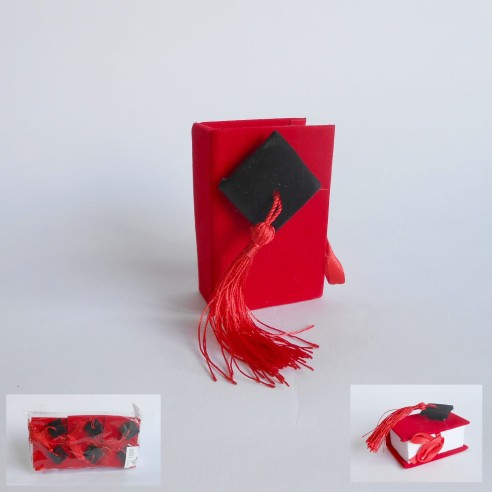Bomboniera Libro Rosso Laurea con cappello Tocco nero 6 pz art SC434