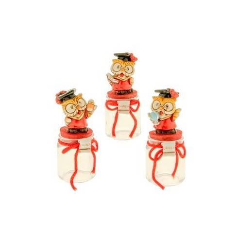 Bomboniera decorazione Barattolo Vetro Gufo LAUREA in resina ROSSO h 11 cm Confezione 3 pz art 04A299