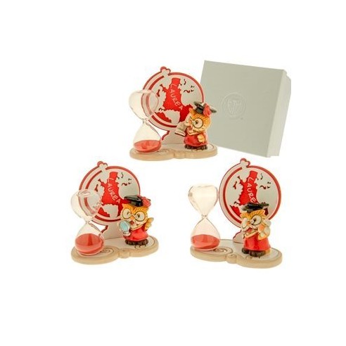 Bomboniera Clessidra con inserto Gufo e albero della vita LAUREA in resina Legno ROSSO 11 x h 8 cm con scatola Confezione 3 pz art 04A301