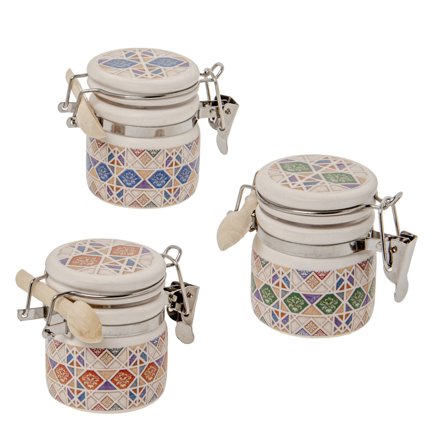 Bomboniera barattolo ermetico Porcellana con maiolica h 6 cm set 3 pezzi art 02A188