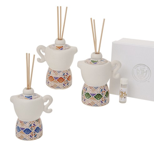 Bomboniera Profumatore diffusore caffettiera Porcellana con maiolica h 11 cm set 3 pezzi art 02A191