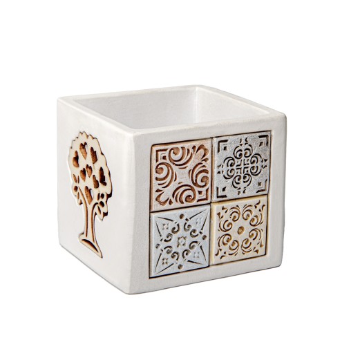 Bomboniera vaso quadrato porta pianta in resina e legno 7 x 6,5 cm art 08A139