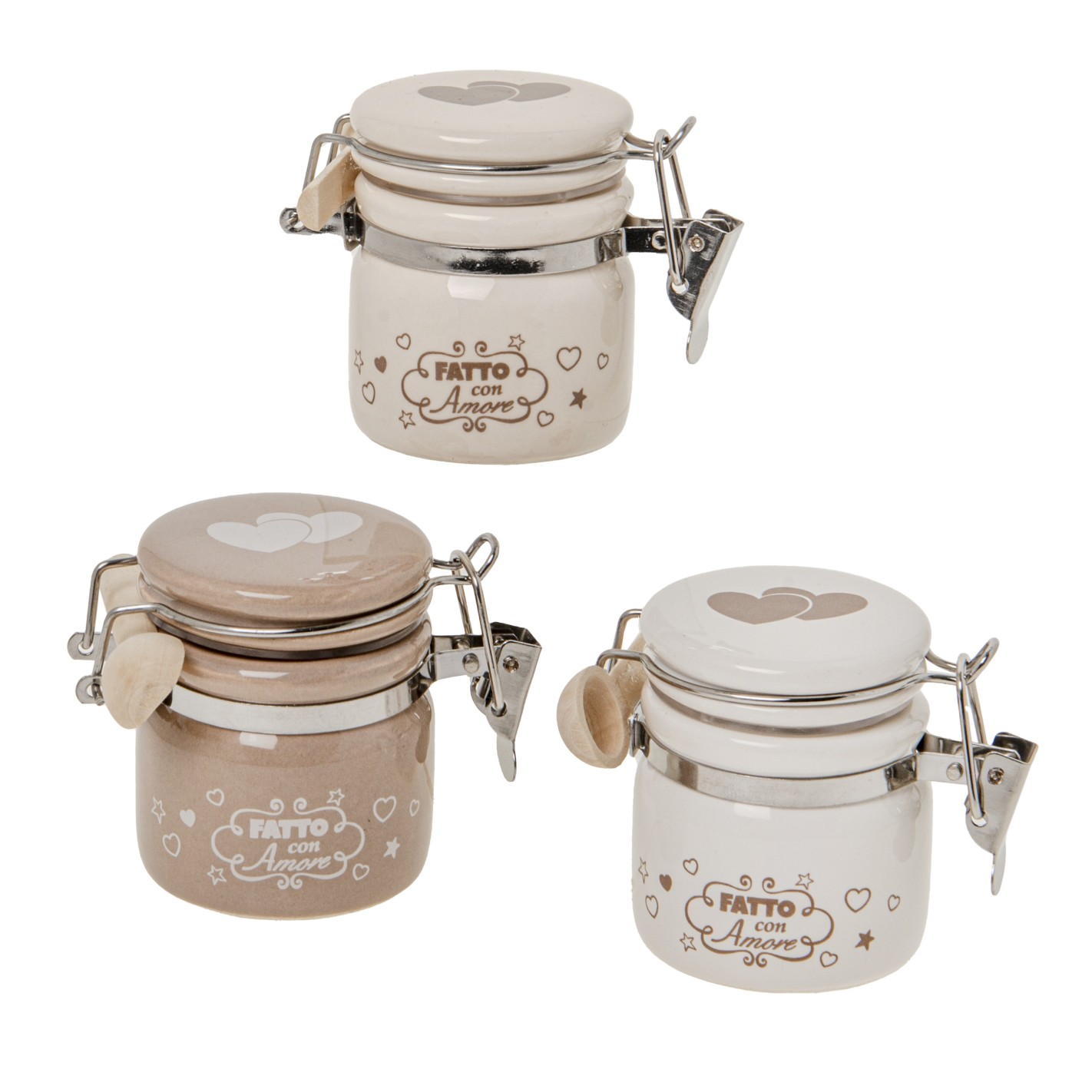 Bomboniera barattolo ermetico Porcellana inserto cuori h 6 cm set 3 pz art 02A175