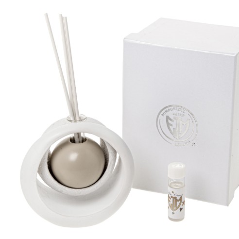Bomboniera profumatore sfera modello astro 2 cerchi in resina scatola propria .