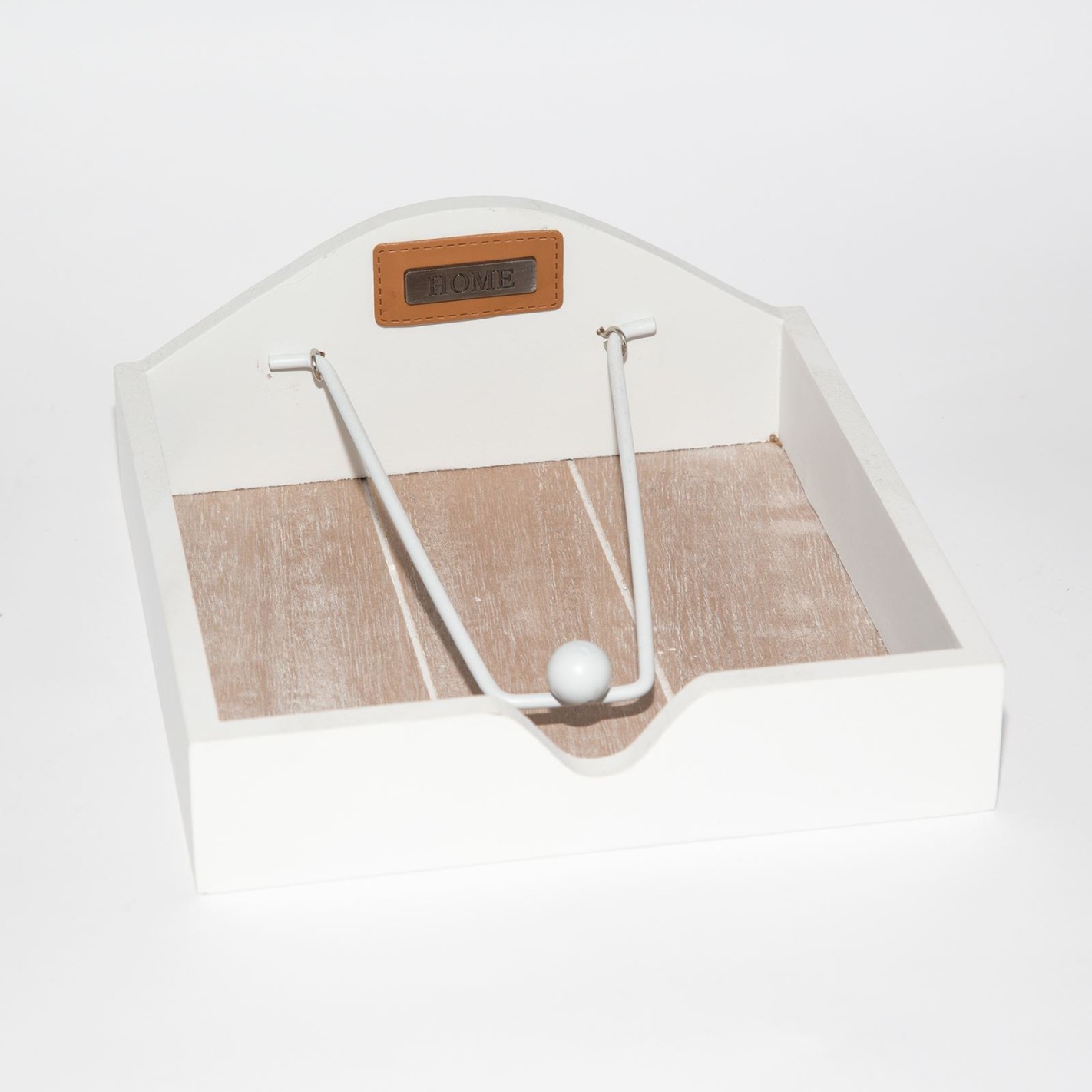 Porta tovagliolo in legno bianco con placchetta in ferro scritta " HOME" ideale per Bomboniera Matrimonio,anniversari,cresima,comunione e altre occasioni.