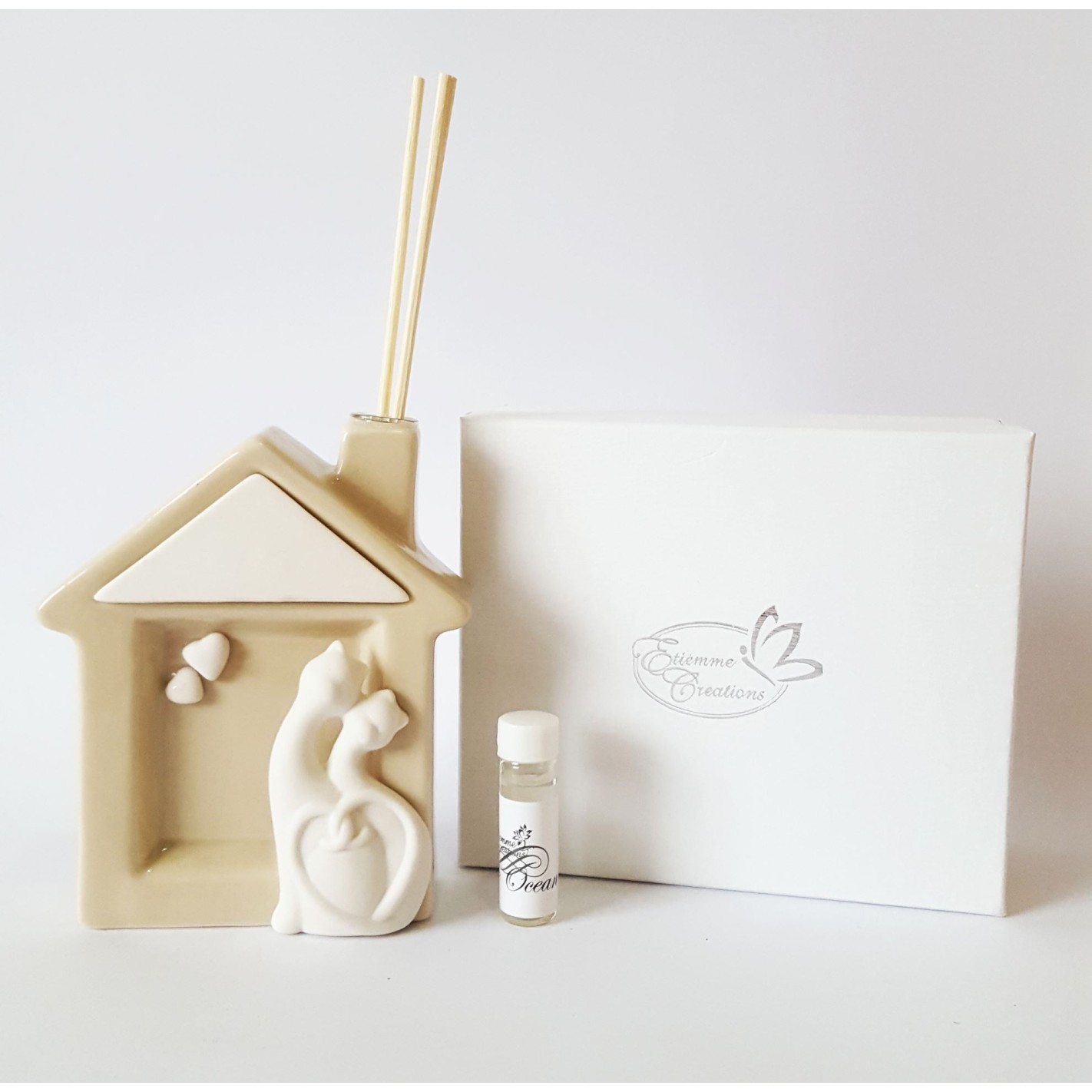 Diffusore casetta in ceramica con inserto Coppia Gattini Bianchi ideale per Matrimonio , Anniversario Battesimo nascita e altre occasioni.