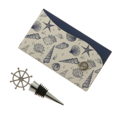 Bomboniera decorazione tappo per bottiglia in metallo timone nave con scatola art 12341