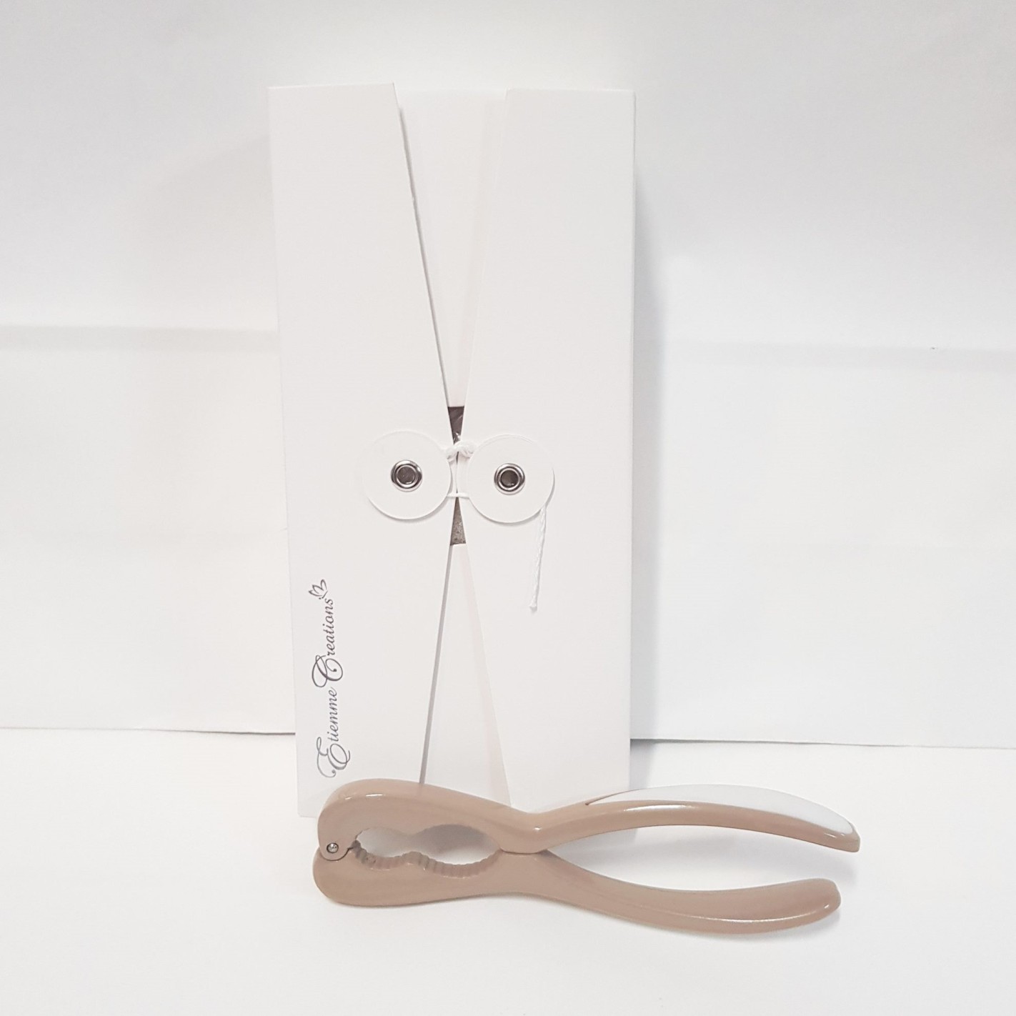 Bomboniera Schiaccianoci in metallo marrone e inserto cuore Bianco in Gomma , dotato di scatola propria idea regalo o bomboniera Matrimonio Anniversario e altre occasioni .