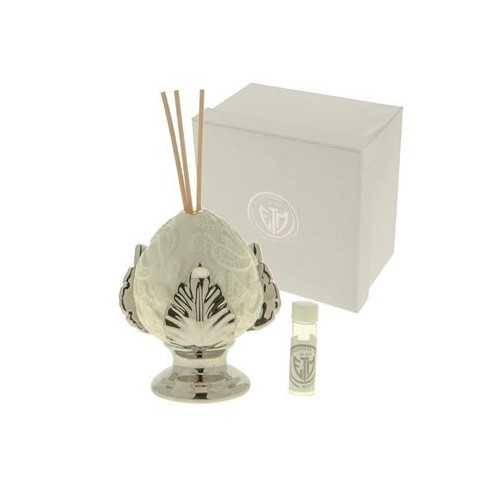 Bomboniera Diffusore PUMO in porcellana Argentata e Bianca h 11 cm con scatola art 02A144