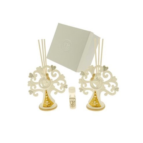 Bomboniera diffusore profumatore Coppia innamorati con albero della vita in resina Bianca e Oro con scatola idea decorazione o Bomboniera