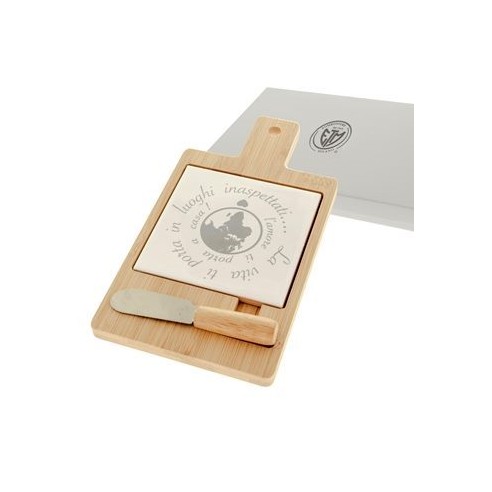 Bomboniera Set Formaggio in Legno e Ceramica con spatolina 12 x 22 cm con scatola art 08A082