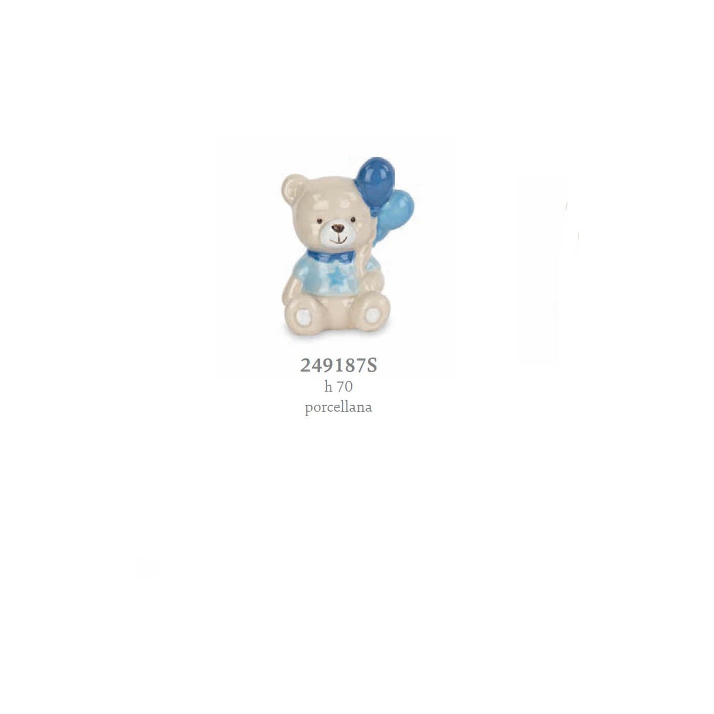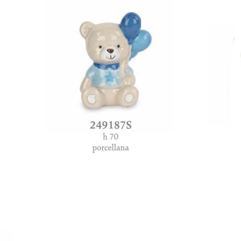 BOMBONIERA ORSETTO PALLONCINI AZZURRI H.70MM ART. 49187