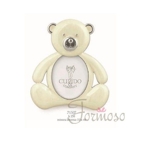 Orsetto porta foto in resina avorio e strass ideale per Battesimo,compleanno,matrimonio,anniversari e altre occasioni