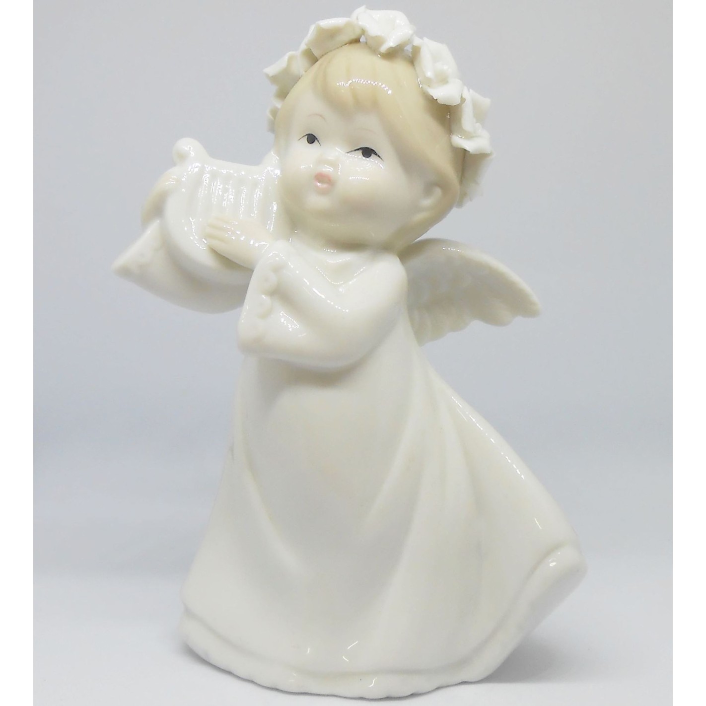 Bomboniera Angelo ceramica Bianca con cetra Battesimo Nascita art 90
