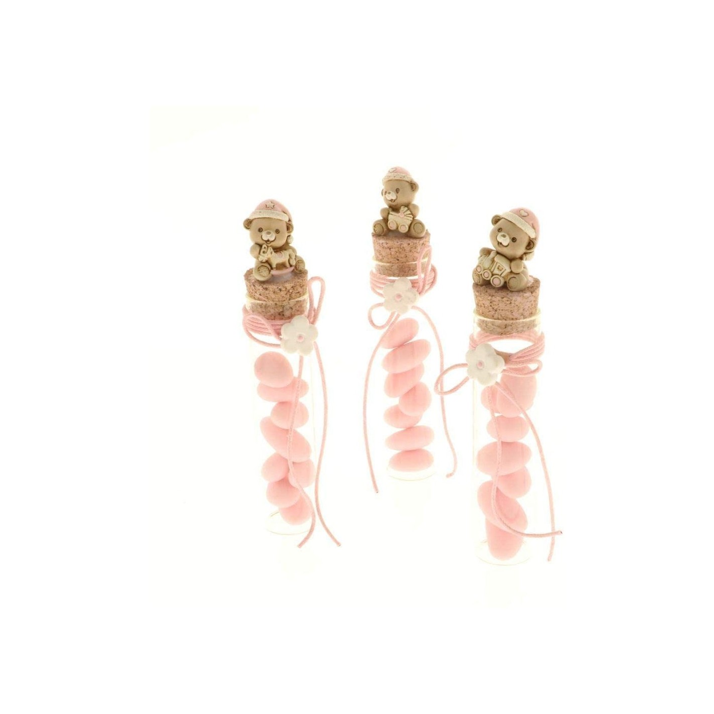 Bomboniera decorazione Fiala Provetta vetro tondo confetti inserto ORSETTO Rosa h 17 cm 6 pz art 049541