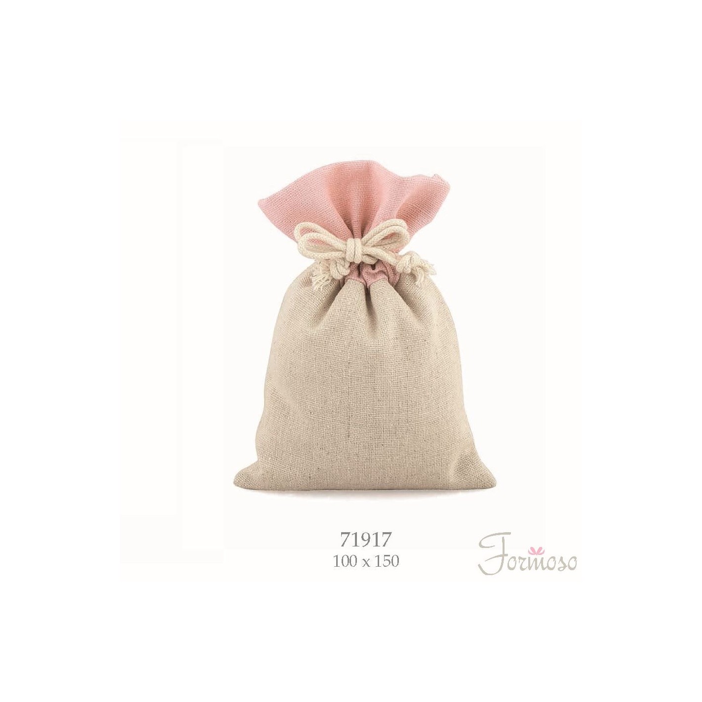 Sacchetto porta confetti avorio e Rosa bomboniera 10 x h 15 cm set 12 pz art 71917