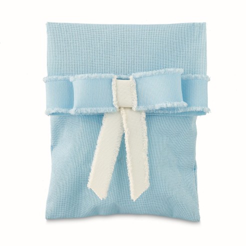 Bomboniera decorazione Sacchetto tipo Busta in tessuto con Fiocchetto Celeste Battesimo Nascita 11,5 x h14,5 cm 12 pz art 28566