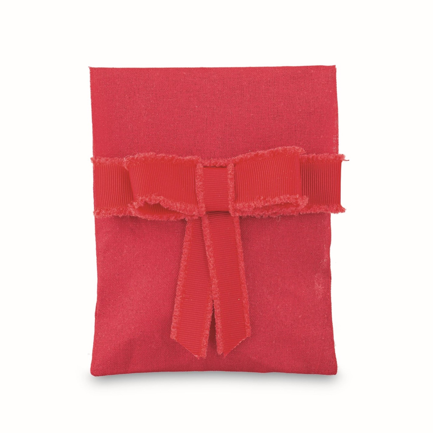 Bomboniera Sacchetto tipo Busta in tessuto con Fiocchetto Rosso 11,5xh14,5 cm 12 pz art 28576