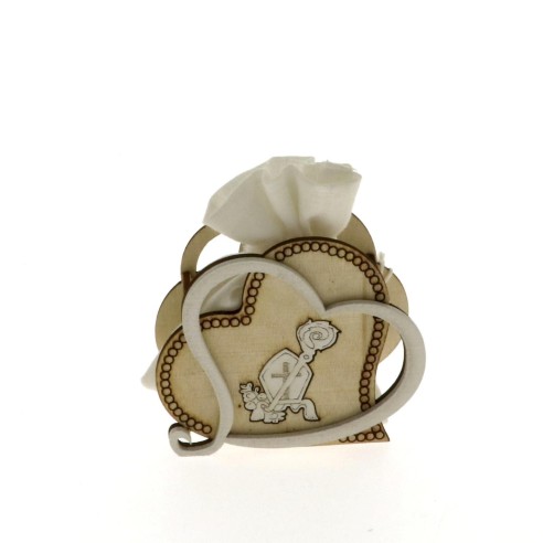 Sacchetto porta confetti con inserto A forma di cuore con Simbolo Cresima in legno idea Bombonierao decorazione comunione o festa a tema.