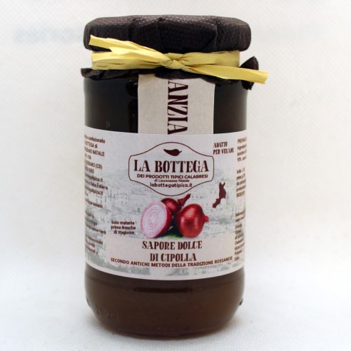 Barattolo in vetro con delizia marmellata di cipolle fatto con prodotto italiano al 100% con metodo secondo antica tradizone Rossanese ( Regione Calabria)
