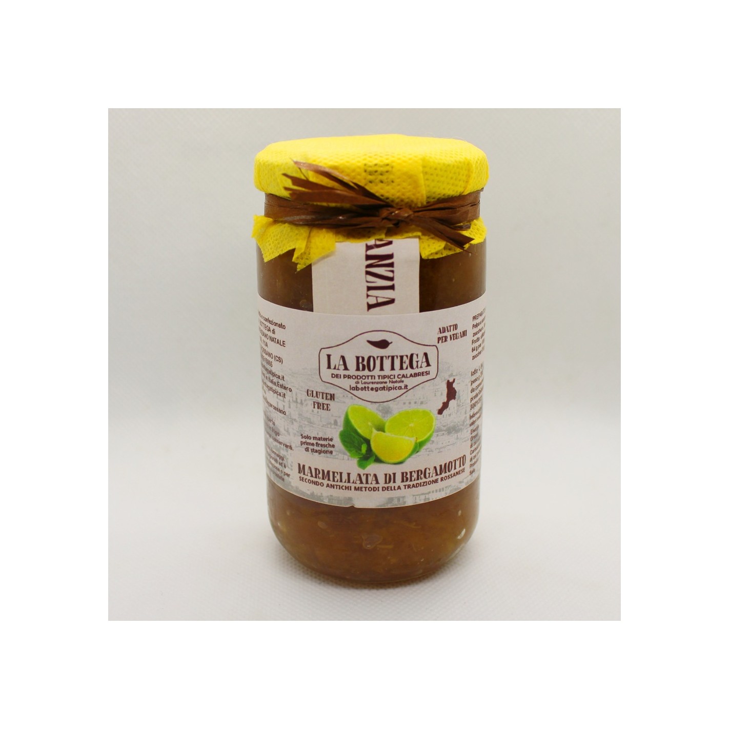 Barattolo in vetro con delizia marmellata di Bergamotto fatto con prodotto italiano al 100% con metodo secondo antica tradizone Rossanese ( Regione Calabria)