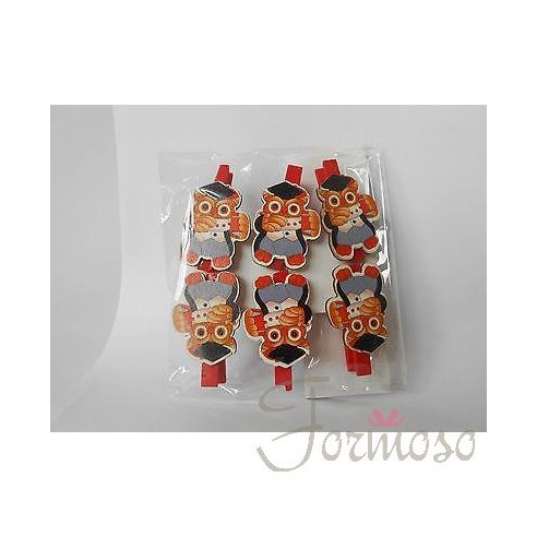 Gufo a molletta in legno per decorazione bomboniera set 6 pz ideale per festa laurea.