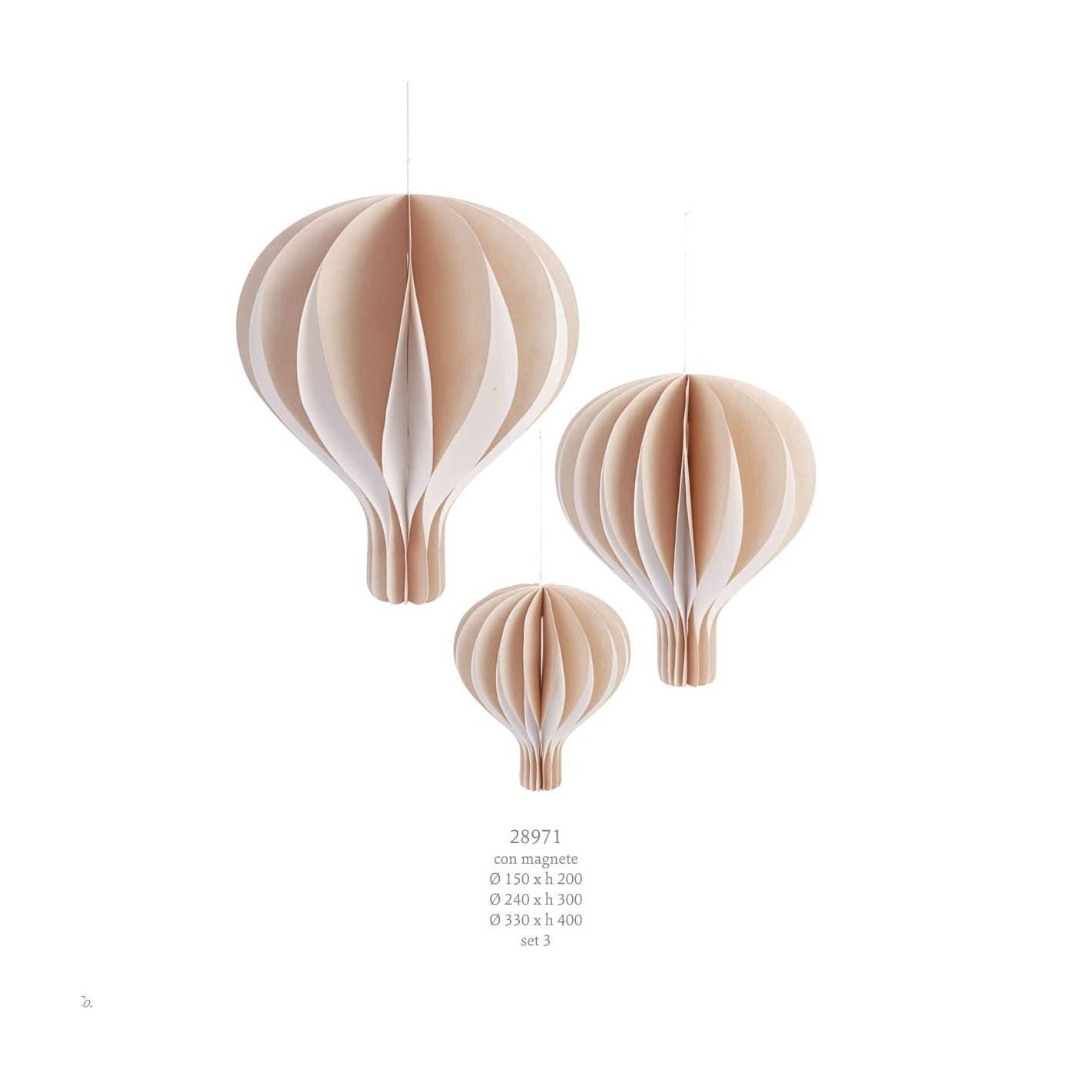 Set 3 Mongolfiere beige in carta da appendere per decorazione Wedding D.15-24 - 33 cm art 28971