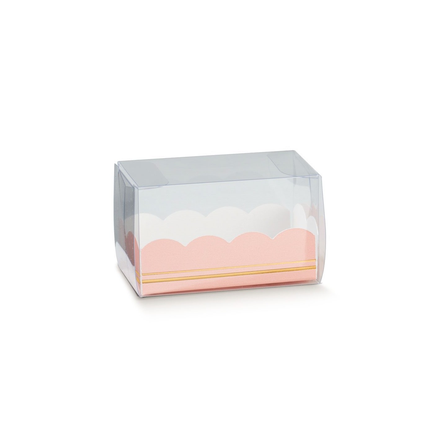 Scatola Astuccio Trasparente con Vaschetta colore ROSA e ORO per MACARONS misura 16 x 5 x 5 cm Confezione 200 pz art 36206