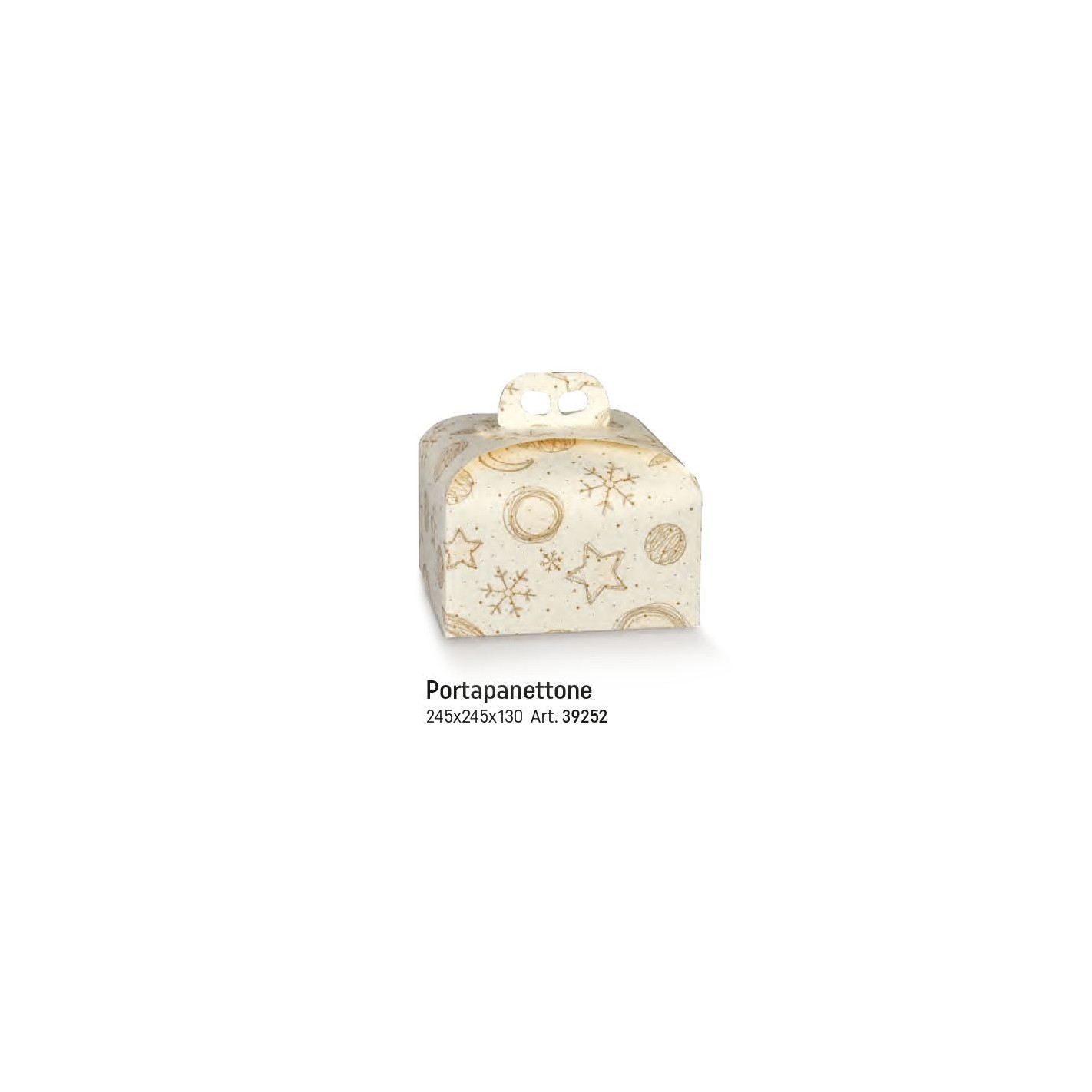 Scatola in cartone porta Panettone confezioni Natalizie colore BIANCO e ORO mis. 24,5 x 24,5 x h 13 cm Confezione 50 pz Art 39252