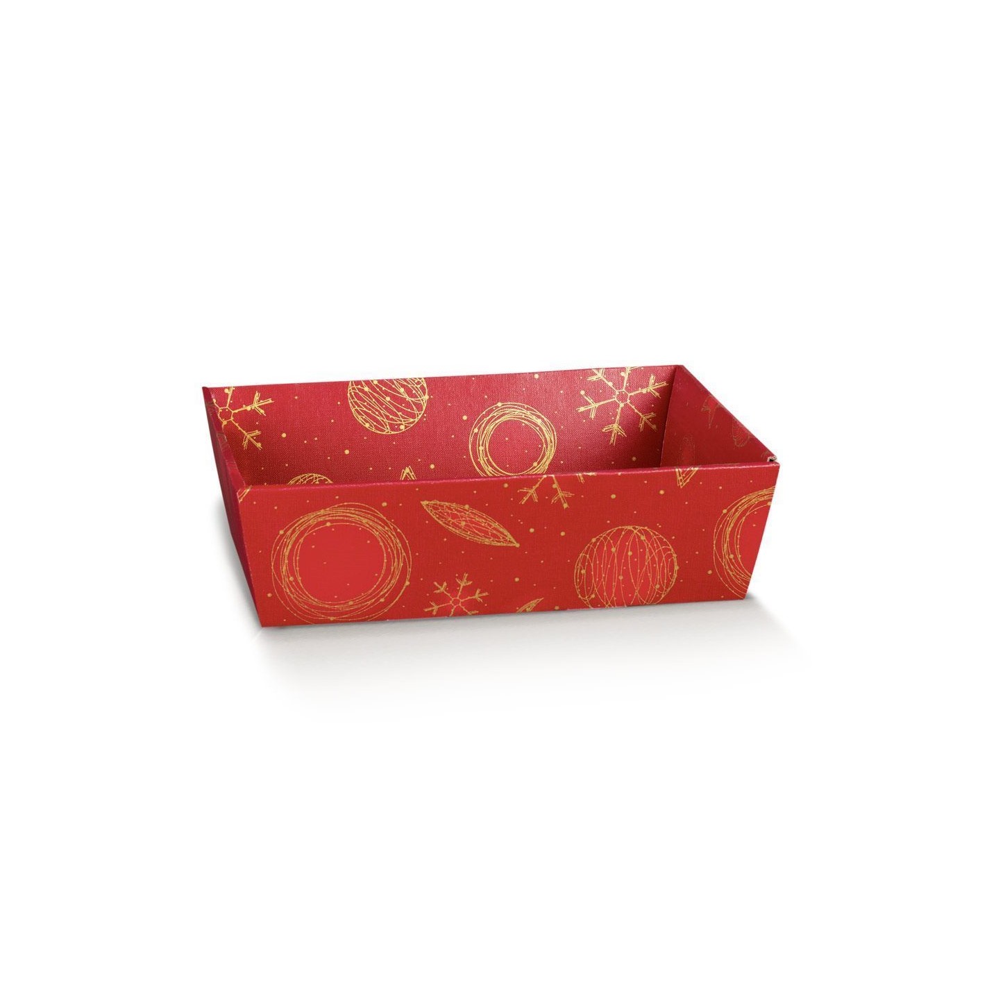 Cesto in cartone confezioni Natalizie CONICO colore ROSSO con disegni ORO misura 40 x 30 x h 11,5 cm Confezione 30 pz Art 39221