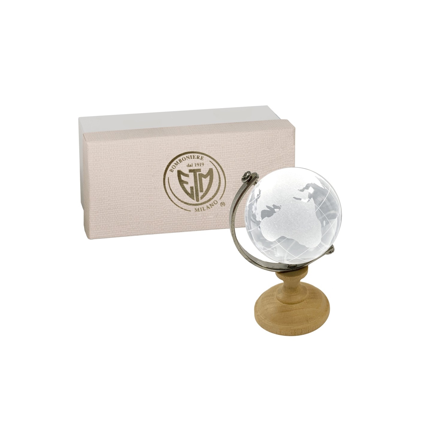 Bomboniera decorazione Mappamondo in Vetro su base in legno marrone naturale h 6,5 art 07A020