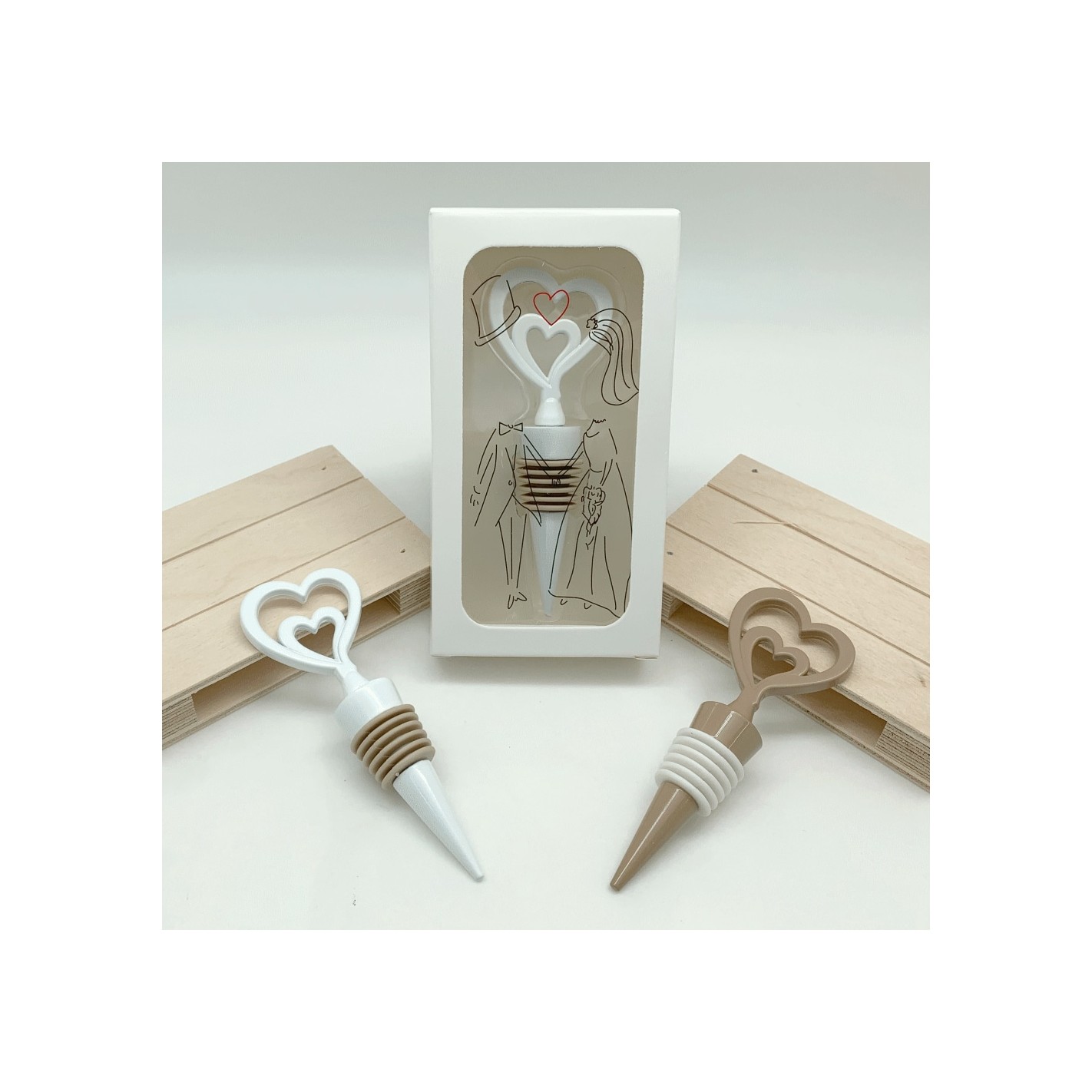 Bomboniera Decorazione tappo bottiglia a forma cuore dotato di scatola propria come in foto set 2 pezzi bianco e tortora idea decorazione o Bomboniera Nascita Matrimonio Anniversario Battesimo Compleanno o festa a tema .