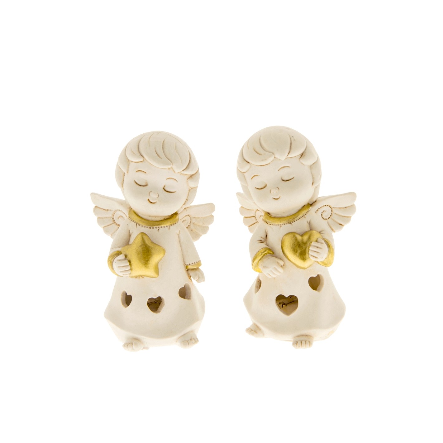 Bomboniera Angelo in resina Avorio e oro con Simbolo Stella e cuore e luce LED, idea decorazione o bomboniera Battesimo Nascita e altre occasioni